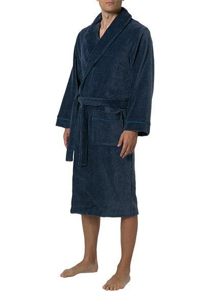Der Bademantel zeigt sich in cleaner Optik. In Kombination mit einem weichen Baumwoll-Mix avanciert der komfortable Begleiter so zum hochwertigen Lieblingsteil. Egal ob in der Sauna oder auf dem Sofa.